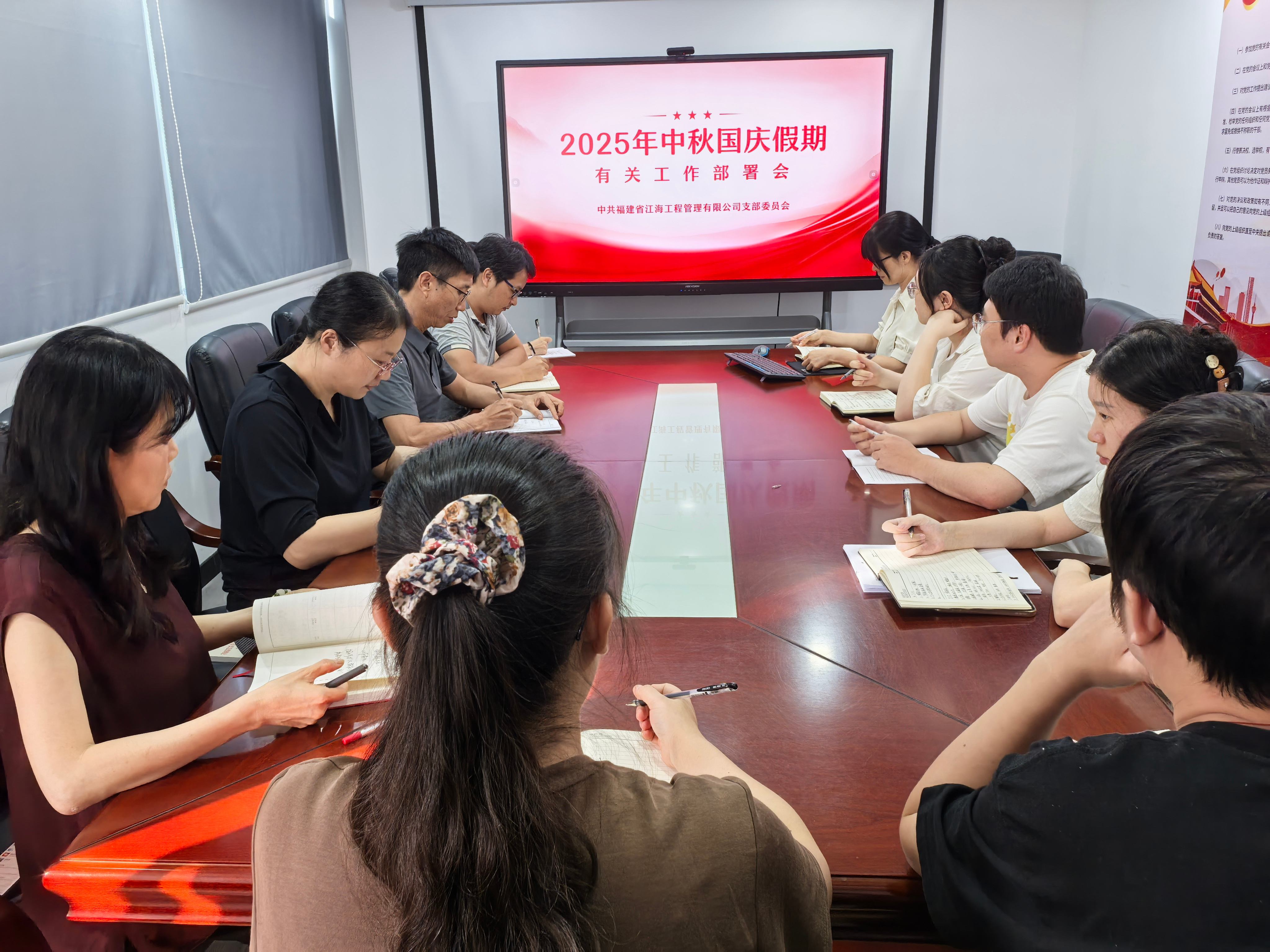 | 双节将至,为确保假期各项工作平稳有序推进,9月30日江海公司召开国庆中秋假期工作部署会议,全面统筹纪律作风、安全生产、值班值守等重点任务,公司经营班子及各部门负责人参会。 一、传达学习廉洁要求并开展集体廉洁谈话 会议首先传达学习上级关于国庆中秋期间严格落实中央八项规定精神、从严纠治 “四风” 的通知要求,并组织集体廉洁谈话。会议强调,全体党员干部要以案为鉴、汲取教训,严格执行廉洁自律规定,坚决杜绝违规吃喝、收送礼金等违纪行为,时刻绷紧 “廉洁弦”,筑牢节日廉洁 “安全网”,持续营造风清气正的节日氛围。 二、部署国庆中秋假期安全监理工作 在安全监理工作部署上,会议指出,假期项目工地施工人员轮班频繁,部分项目赶工导致作业强度加大,安全监督压力显著上升。公司相关部门及各监理部需聚焦监理核心职责,对在监项目开展 “拉网式、起底式” 隐患排查:紧盯施工单位违规作业行为,重点核查深基坑、高支模等危大工程安全管控情况;联合建设单位强化项目现场消防管理与安全监督;督促施工方严格落实安全生产主体责任,逐项检查消防设备完好性、应急物资储备量,对发现的隐患问题建立台账、跟踪整改,确保闭环管理。同时,通过监理技术交底、现场实操演示加强安全科普,并协助施工方开展应急演练,切实提升项目现场人员的安全意识与应急处置能力。